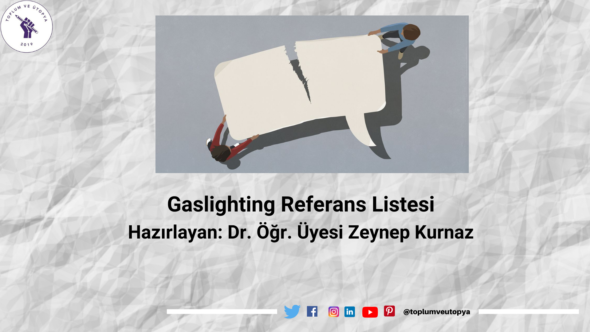 Dr. Öğr. Üyesi Zeynep Kurnaz’ın hazırladığı “Gaslighting Referans Listesi”ni ilginize sunuyoruz: