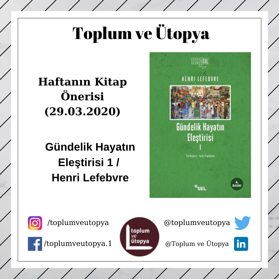 Haftalık kitap önerilerimizde bu haftanın kitabı; Henri Lefebvre tarafından kaleme alınan “Gündelik Hayatın Eleştirisi 1” adlı kitap.