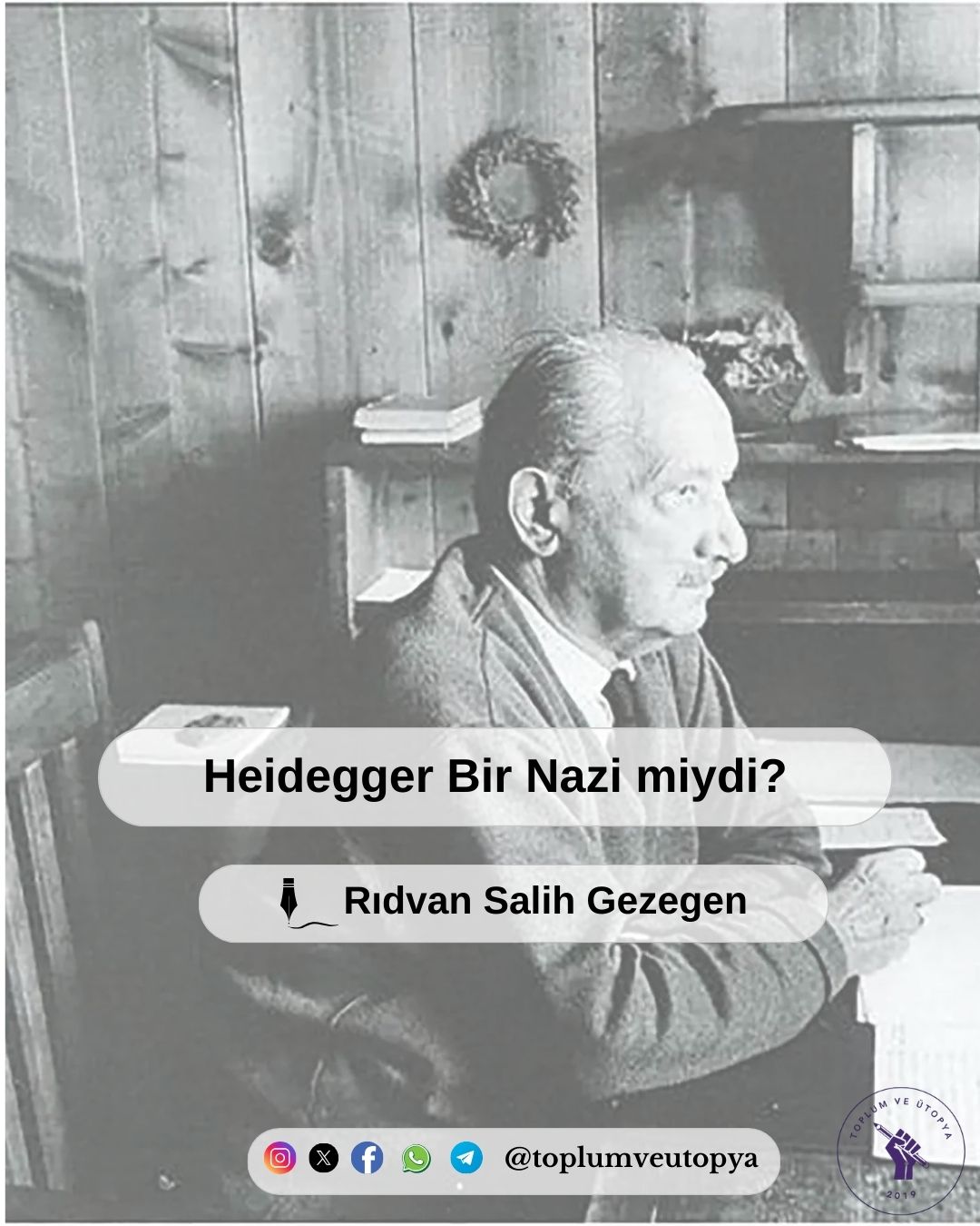 Martin Heidegger hem felsefesiyle hem de siyasi anlayışıyla çok tartışılmıştır. “Heidegger Bir Nazi miydi?” sorusu onun parti üyeliğinden ve o dönemki çeşitli yazılarının ve söylevlerinin bir sonucudur. Bu soruyu cevaplayabilmek çeşitli kaynaklardan yararlanmak en sağlıklı bilgiye ulaşmak için gereklidir. Özellike Rüdiger Safranski’nin Heidegger: Bir Alman Üstat adlı kitabı ve Heidegger’in kendi notlarından oluşan Kara Defterler bizim için yeterince iyi kaynaklar olacaktır. Bazı bilgileri ise Kaan H. Ökten’in Heidegger hakkında kaleme aldığı birkaç eserden almak sorunun cevabının netleşmesine yardımcı olacaktır. Son olarak ise Heidegger’in Der Spiegel’e 1966’da verdiği ancak yayımlanmasını ölümünden sonra istediği için 1976’da yayımlanan, “Nur noch ein Gott kann uns retten” (Yalnızca Bir Tanrı Bizi Kurtarabilir) adlı röportajından yararlanacağız.