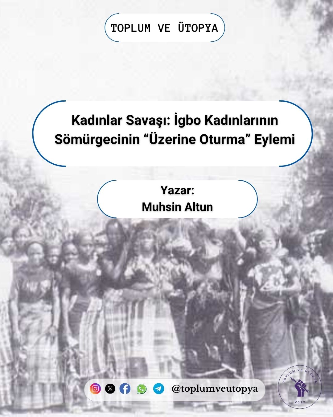 İgbo kadınları, dışa açık toplumsal yapılarına karşın sömürge ve otorite karşıtı eylemleri örgütlerken geleneksel kurum ve pratikleri seferber ettiler. Mikiri oturumunda karar aldılar; palmiye yapraklarıyla haberleştiler; Egwu yaptılar; soyundular ve atanmış şeflerin “üzerine oturdular”. Bu sonuncusu, geleneğin İgbo kadınlarına tanıdığı kadim bir hak olmakla, onları erkeklerin müdahalesinden muaf tutuyordu. Çünkü kadınlar bu eylemi yalnızca kesinlikle gerekli gördüklerinde yapıyorlardı. Kadınların, erkeklere karşı başlattıkları “üzerine oturma” eylemi nedeniyle öldürülmek şöyle dursun, kendilerine karşı konulması ya da kötü muamele görmeleri duyulmamış bir şeydi. Ancak düzenledikleri büyük ölçekli bir eylem, sömürgen çıkarları tehdit ettiğinde şiddetle karşılık gördü ve Kadınlar Savaşı’na dönüştü. Ogu, kültürel bir yanlış anlamadan değil, sömürgecinin ideoloji statüsünü haiz bir emperyal politikayı gerektiğinde şiddet kullanarak sürdürme kararlılığından kaynaklandı.