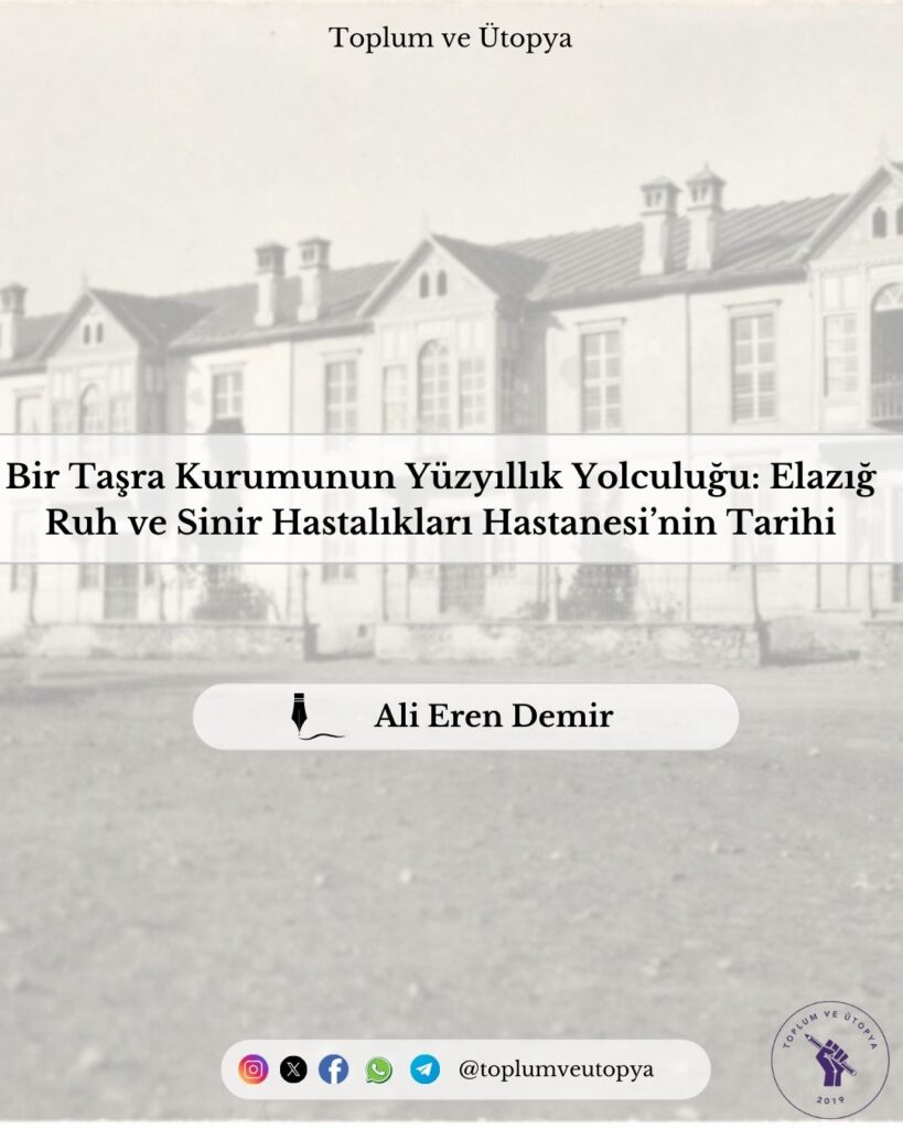 Bir Taşra Kurumunun Yüzyıllık Yolculuğu: Elazığ Ruh ve Sinir Hastalıkları Hastanesi’nin Tarihi | Ali Eren DemirToplum ve Ütopya11 May, 3:39 pm